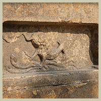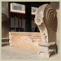 四大天王 石雕五門殿兩旁的龍虎翼廊可以欣賞到「四大天王」石雕。四大天王為古印度須彌山的四大護法,民間俗稱「四大金剛」。佛經中的四大天王分別為東方「持國天王」手執琵琶,「持國」之意為慈悲為懷,保護眾生,是為樂神,以音樂感化眾生皈依佛教。南方「增長天王」手執寶劍,「增長」指能傳令眾生,具增長善根,護持佛法之意。西方「廣目天王」手持小龍,「廣目」意為能以淨天眼觀察世界,護持人民。北方「多聞天王」手持寶傘,「多聞」比喻福德之名聞於四方,其手持寶傘用以制服魔眾,保護人民財富。