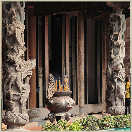 泉州惠安縣峰前村的石雕匠師群(俗稱打石師),有一支以蔣馨為首的工匠,於大正、昭和年間渡海來台,從事台灣廟宇、墓園的石雕,並設籍於鹿港。昭和二年(一九二七)蔣馨承包鹿港天后宮三川殿及正殿石雕工程,並由女婿張金山負責監工,昭和十三年(一九三八)鹿港龍山寺五門殿觀音石雕為張金山所承包,由所屬匠師施做,民國四十八年天后宮後殿牆堵石雕為張金山之子張清玉及張清碧的作品,從昭和二年至民國六十五年,近五十年的時光,橫跨祖孫三代,蔣馨家族為台灣留下精緻的石雕作品,其族人目前仍居住於鹿港埔頭街內。
