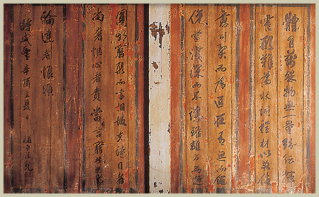 書法的落款為咸豐辛酉年,即咸豐十一年(一八六一),從耆老的訪談中得知,大正十年(一九二一)後殿遭到回祿之災時,燒毀後殿建築及右廂部份,左廂房並未被波及,才留下這幅書法,目前木屏上的書法,保存情況尚稱良好。另外,陳晄的書法墨跡亦可在鹿港丁家大宅的前廳看見其落款。