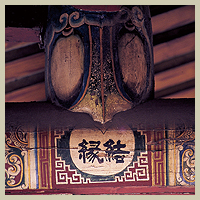 黃祖輝,名朝欽,號庭經,字書初,生於光緒中葉,學黃山谷字帖,並曾隨前清秀才鄭鴻猷學字,曾負笈日本,入草書大家林祖洞門下,榮獲日本全國書道展泰東書道會最高榮譽賞。龍山寺後殿點金柱上對聯「願結福緣豈在一炷清香幾聲佛號,能全善果自然長參奧義永悟禪機」為其作品。