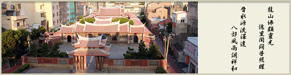 道光二十七年(一八四七)「觀音菩薩壽費碑」碑文內容記載:「…佛像莊嚴百世沐神庥之德,我溫陵七邑倡建龍山寺也,源溯鴻江…」,再次說明龍山寺係由泉州七縣人士倡建。